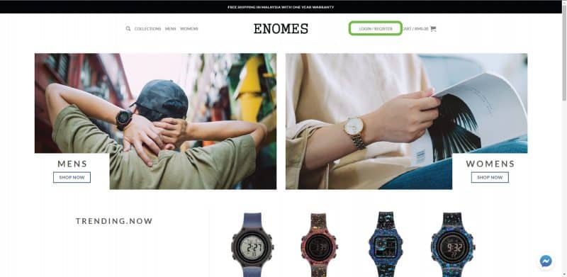 If you are not an existing member on our website, create an account by clicking the “LOGIN / REGISTER” tab located at the top right of the ENOMES home screen.