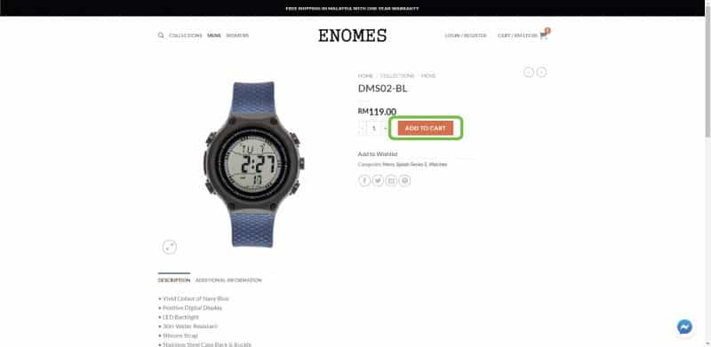 Once you’ve found the timepiece you’d like to purchase, go ahead and click on the “ADD TO CART” tab located on the product page.