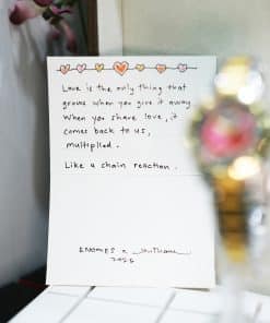 Love is the only thing that grows when you give it away When you share love, it comes back to us, multiplied. Like a chain reaction.